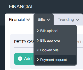 You can find a list of all payment requests under Financial > Bills > Payment request.